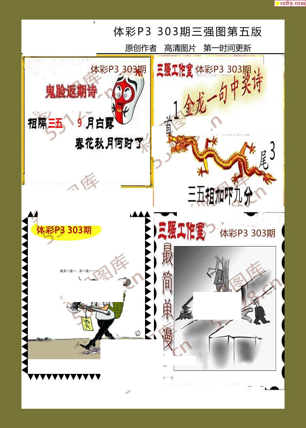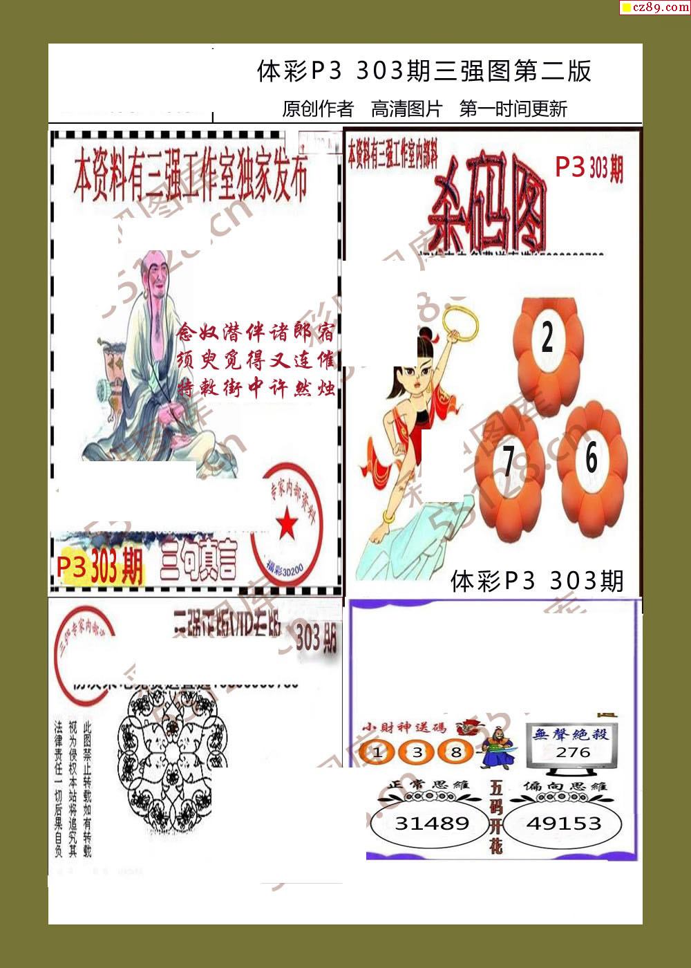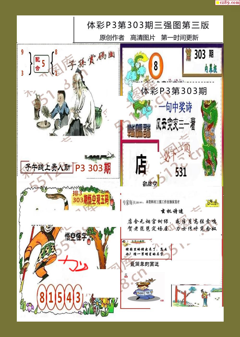 三强图系列303期体彩p3图谜